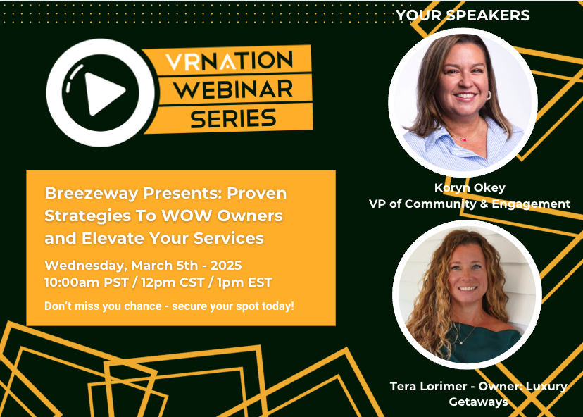 Join Breezeway and VRNation for an insightful session on boosting owner satisfaction! Discover five strategies to attract new owners, retain their trust, and elevate your management services. Learn how to optimize your tech stack to stand out, showcase your professionalism, and impress owners. You'll also learn how to leverage data effectively to handle challenging conversations with ease and confidence. This session is packed with practical advice to remind homeowners why they chose your company—without adding extra work for your team!